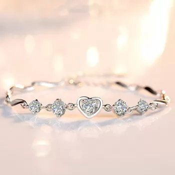 Chic 0.5 Carat 5 Stone Moissanite Bracelet for Women – Sterling Silver 925 with Heart Shaped Bangle Wedding Jewelry