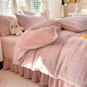 Luxury Double-Sided Velvet Bed Skirt Set – 4pcs Plush Winter Bedding